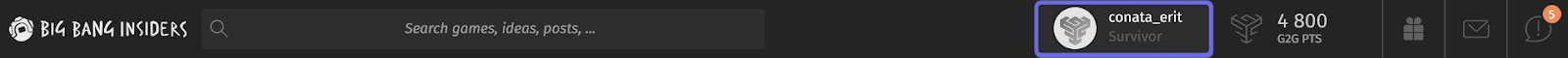 The navigation bar with a user’s avatar and username outlined in purple is shown above.