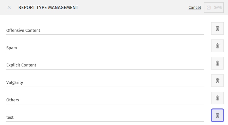 Note: You can only delete a report type that has not previously been used to report content.